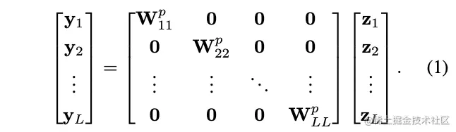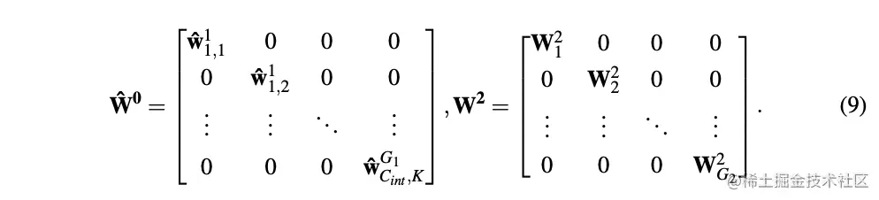 包含个非零权值,对应首分组卷积的第个分组里的第个卷积核,用于扩展维度。为第二个分组卷积(图2的第三个分组卷积)的第个分组的卷积核,用于缩小维度到原始大小。