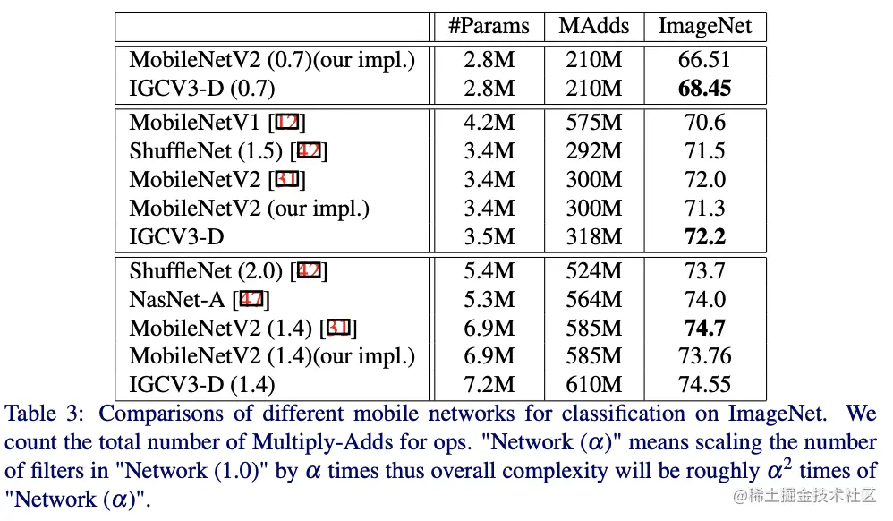 与前两个版本对比,IGCV3-D的和分别为1和2。