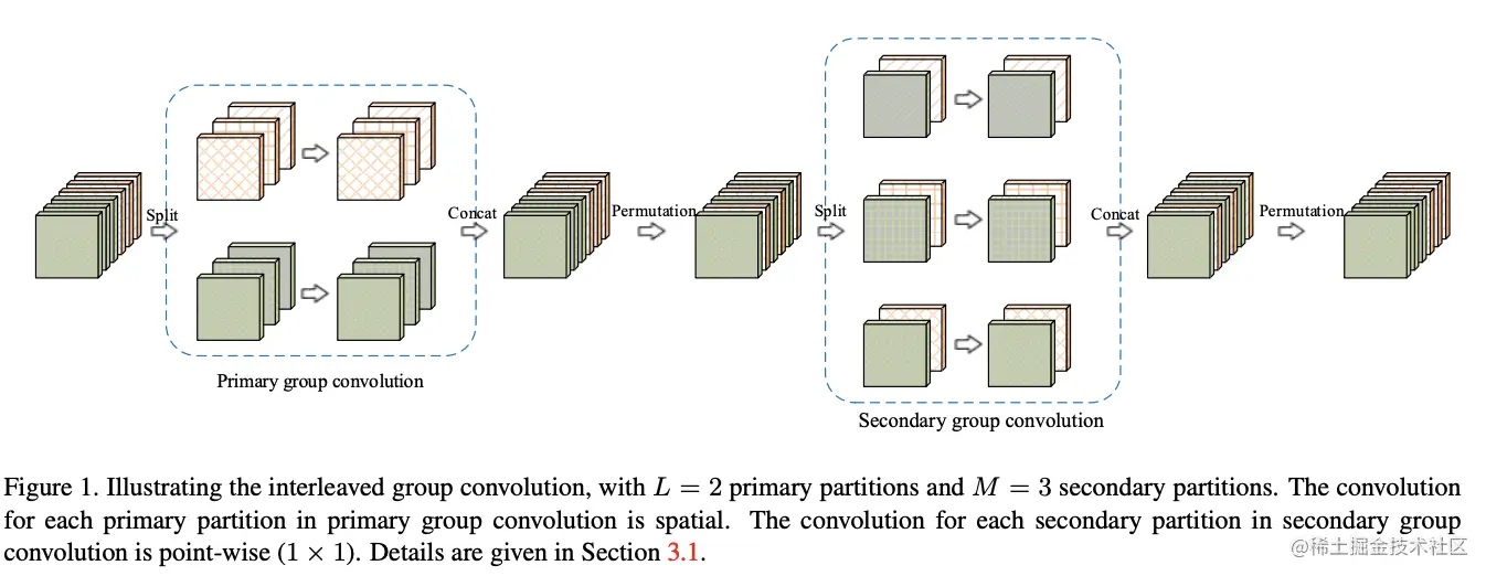 将主分组卷积的输出重排成个次分区,每个分区包含维特征,这样能够保证每个分区都包含来自不同主分区的特征,第个次分区由于每个主分区的第维特征组成: