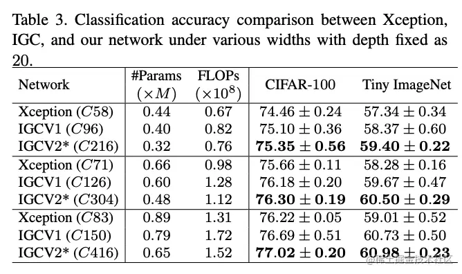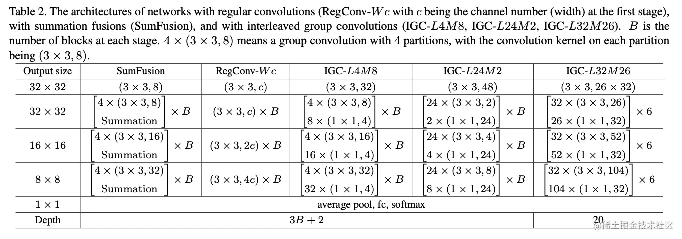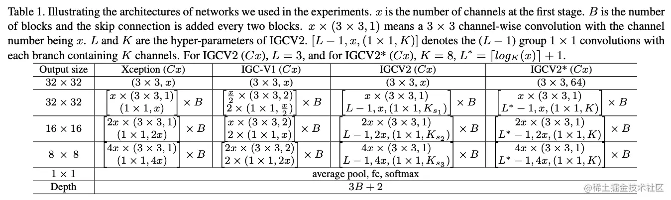 论文对比的网络结构,IGCV2主卷积使用深度卷积。