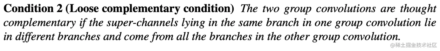 - Complementary condition,互补性原则不是必须的,只是高效设计分组卷积的一条准则,复合卷积可以不将输入输出全连接,设计得更稀疏化。