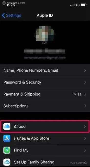 3.在帐户设置页面,选择“ iCloud”开始存储管理。
