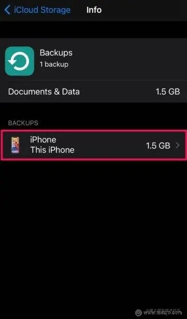 5.选择“备份”。请注意,此备份数据不包括您的照片;接下来,选择用于iCloud备份的iPhone或iPad。