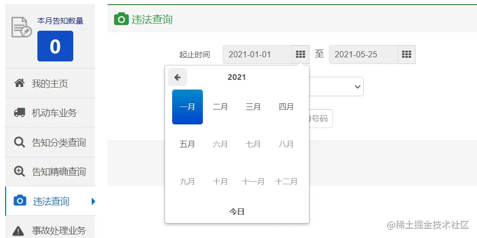 点击违法查询,设置查询时间