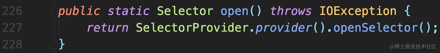 新的selector是通过调用系统默认的SelectorProvider对象的openSelector方法而创建的。