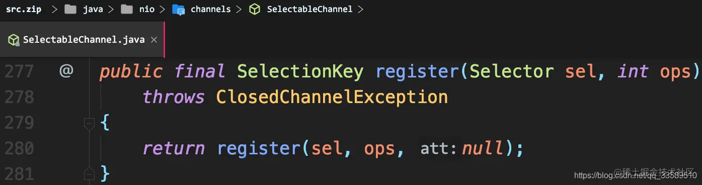 为了将Channel和Selector搭配使用,必须将channel注册到selector。
