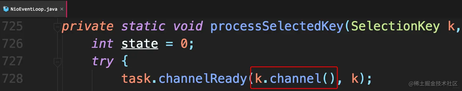 这个循环遍历已选择键集中的每个键,并检测各个键所对应的通道的就绪事件。
