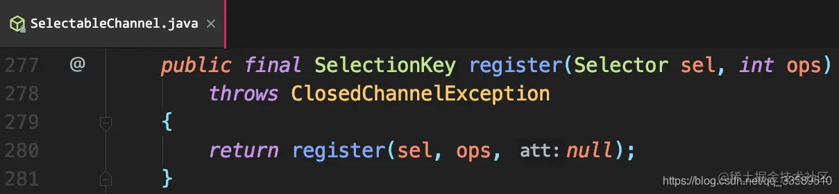 SelectionKey对象被SelectableChannel.register(Selector sel, int ops)返回并提供一个表示这种注册关系的标记。