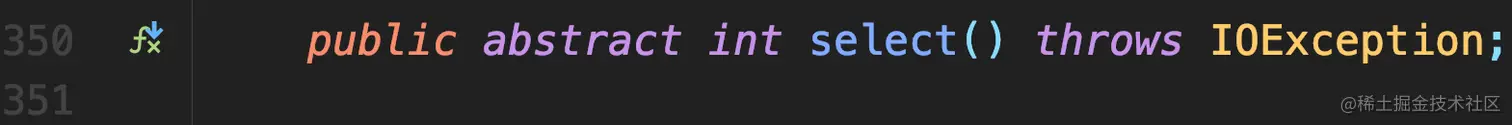 Selector允许单线程处理多个Channel。使用Selector,首先得向Selector注册 Channel,然后调用它的select()。该方法会一直阻塞,直到某个注册的Channel有事件就绪。一旦这个方法返回,线程就可以处理这些事件,事件的例子如新连接 进来,数据接收等。
