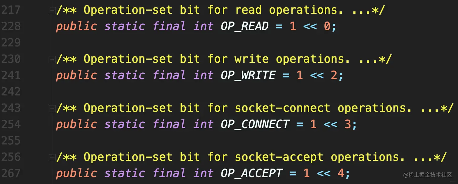 每个Channel在注册到Selector时,都有一个感兴趣的操作。