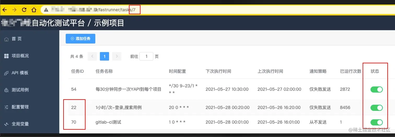 TASK_IDS,需要运行的任务,多个任务用逗号分隔;不传或者为空,则运行所有的任务(任务状态需要是绿色的)PROJECT,测试平台中的项目id