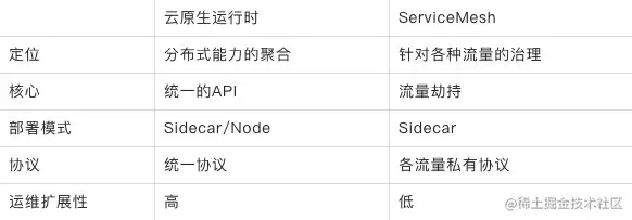 综上所述, 云原生应用运行时和刚才 Mesh 简单对比如下: