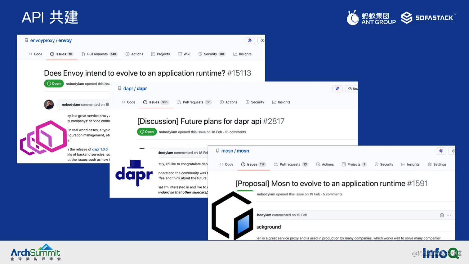 运行时里最主要的一部分就是 API 的定义,为了落地内部,我们已经有一套较为完整的 API,但是我们也看到业界的很多产品有类似的诉求,例如 dapr、envoy 等等。所以接下来我们会去做的一件事情就是联合各个社区去推出一套大家都认可的云原生应用 API。