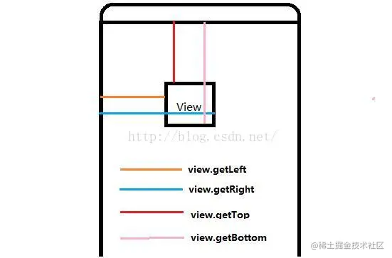其中 view.getLeft(),view.getTop(),view.getRight(),view.getBottom(). 是各边距原点的距离,原点在左上角。