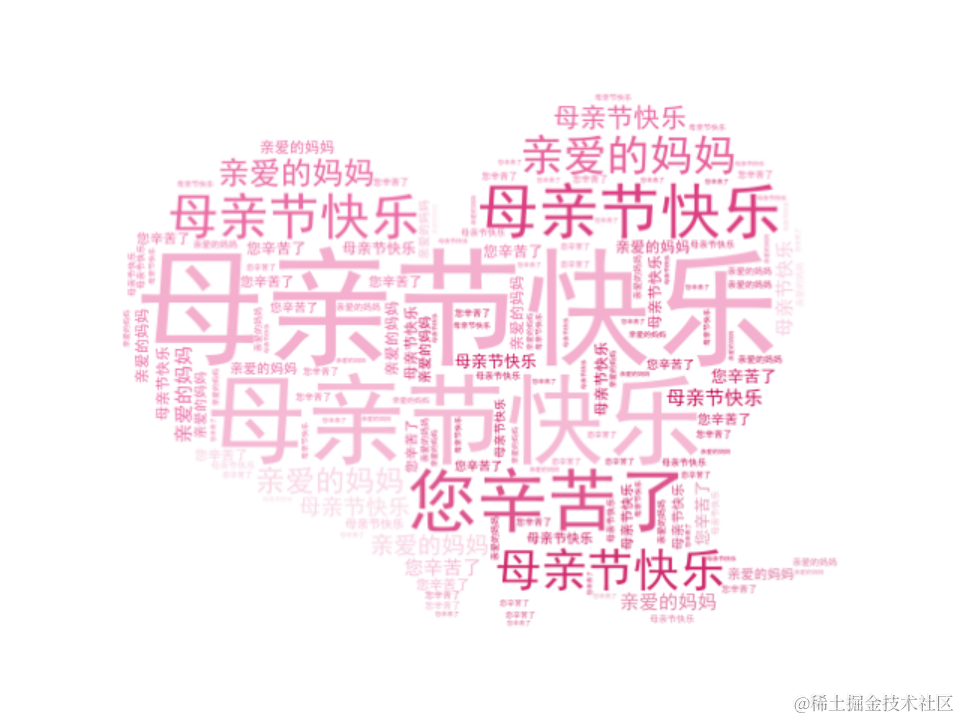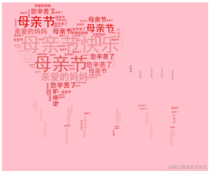 今天我用 Python 制作一个词云图给妈妈送祝福,制作代码如下: