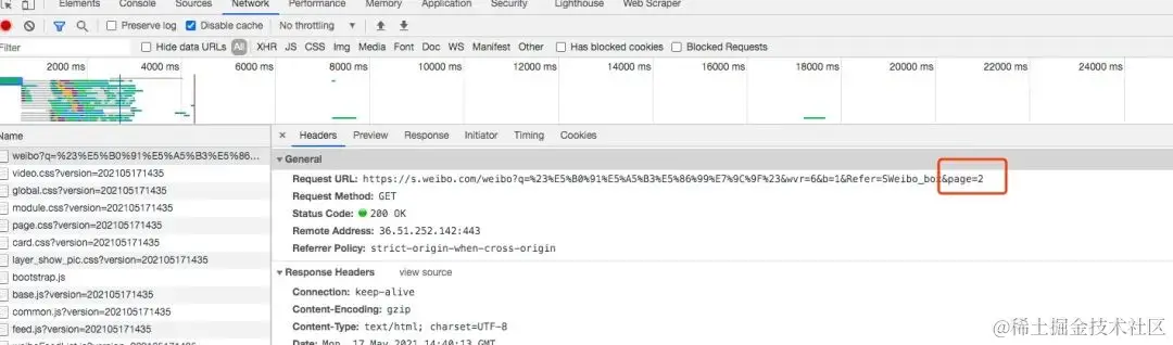 细心的你可能一眼就发现了,请求后面多了一个page参数,它指的是页码,这样就很容易了,我们只需要改变这个页码就可以请求到相应页面的内容。