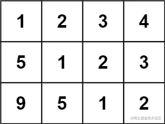 输入:matrix = [[1,2,3,4],[5,1,2,3],[9,5,1,2]]