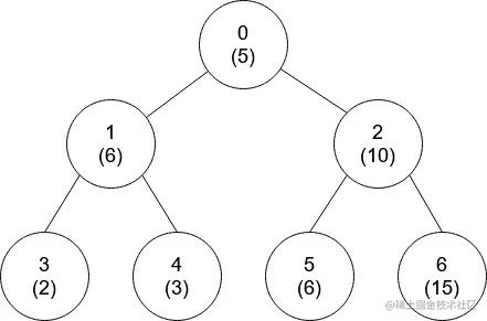 输入:nums = [5,6,10,2,3,6,15], edges = [[0,1],[0,2],[1,3],[1,4],[2,5],[2,6]]