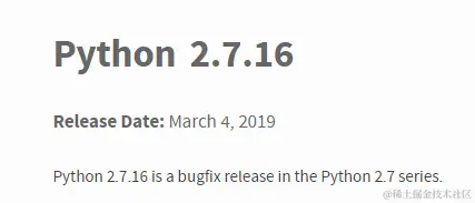 因此我们怀疑和操作系统的权限有关,随后放弃此方式,直接使用安装包安装。进入 python 官网安装 2.7 版本的 python,最新版为 2.7.16: