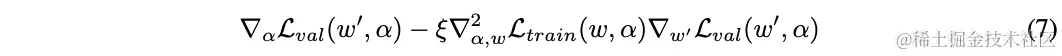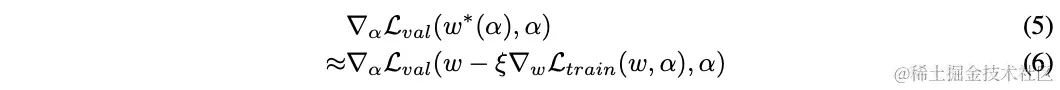 表示当前的网络权重,是内层优化单次更新的学习率,整体的思想是在网络结构改变后,通过单次训练step优化来逼近,而不是公式3那样需要完整地训练直到收敛。实际当权值为内层优化的局部最优解时(),公式6等同于公式5。