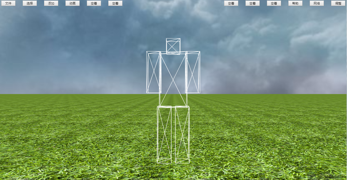 调整完毕后按Enter键坐标轴消失网格属性固定,在这一步时也会对网格的纹理坐标进行重新分配,为下面的纹理配置做准备。通过类似的方式固定多个网格可以生成较为复杂的网格对象,比如下面的人形网格: