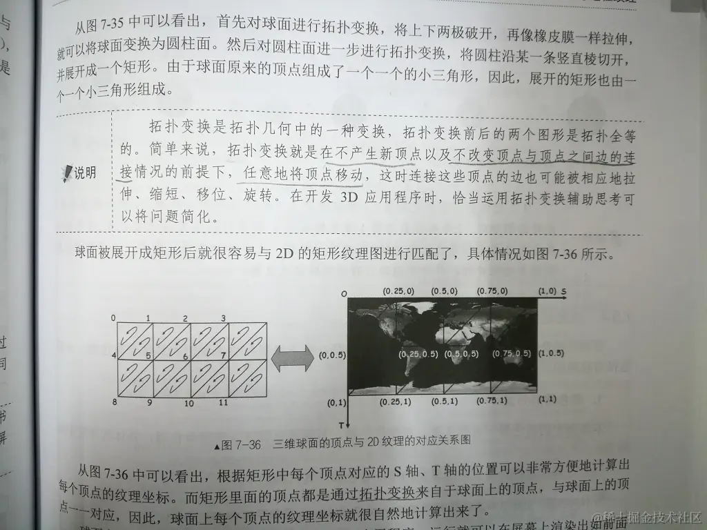 然后将一张纹理贴图的纹理坐标对应到球体网格中的每个三角形上,具体原理如下: