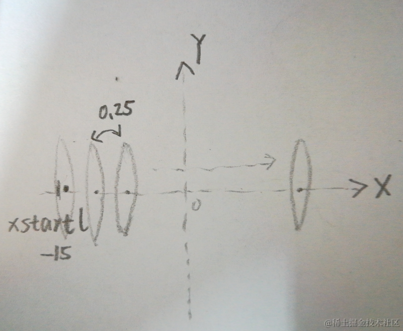 2 var xstartl=-15;//设置船头(也就是第一个圆环路径)在x轴上的位置