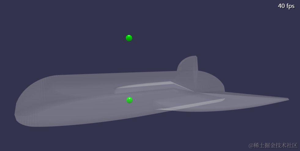 执行ChangeMaterial(mesh_origin,mat_alpha)可以将材质转化为半透明,同样需要对mat_alpha设置上述属性,否则将只有飞船的内表面可见,半透明效果如下图: