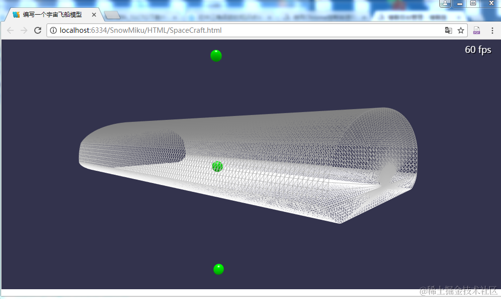 7、在控制台执行ChangeMaterial(mesh_origin,mat_blue)可以将材质转化为纯蓝色,因为条带网格的法线方向默认指向飞船内部,这时飞船外部将不能显示光照的镜面反射效果,解决办法是在初始化材质时设置:
