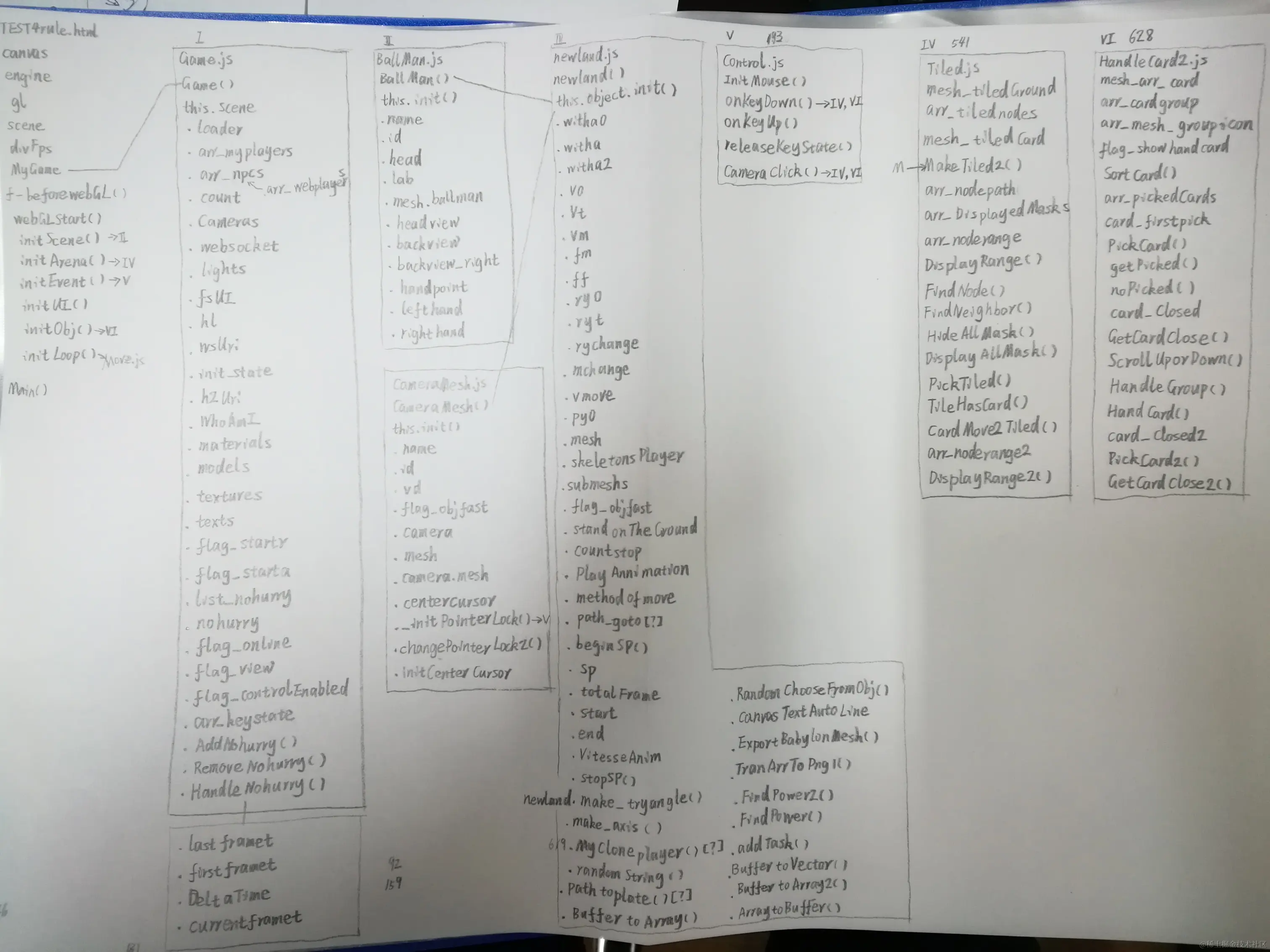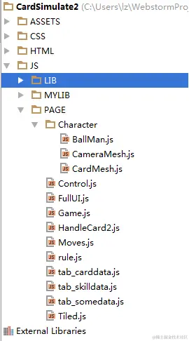 首先把BallMan、CameraMesh、CardMesh三个类分离到三个单独的js文件里,置于Character文件夹中,用以实例化场景中比较复杂的几种物体;