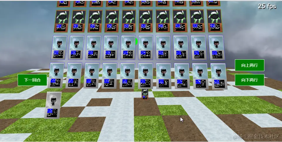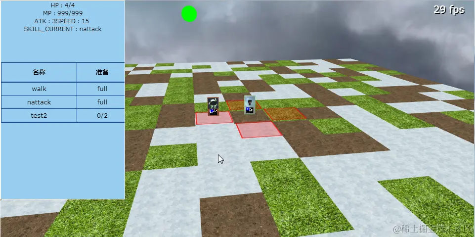 在前三篇文章的基础上,为基于Babylon.js的WebGL场景添加了类似战棋游戏的基本操作流程,包括从手中选择单位放入棋盘、显示单位具有的技能、选择技能、不同单位通过技能进行交互、处理交互结果以及进入下一回合恢复棋子的移动力。因为时间有限,这一阶段的目的只是实现基本规则的贯通,没有关注场景的美观性和操作的便捷性,也没有进行充分的测试。