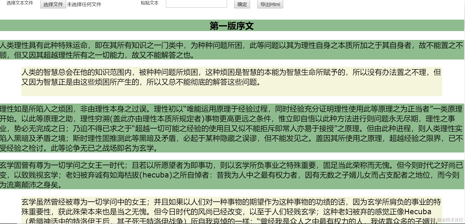 用作例子的文章是康德的《纯粹理性批判》(民国蓝公武译本)(book.sbkk8.com/waiguo/chun…)