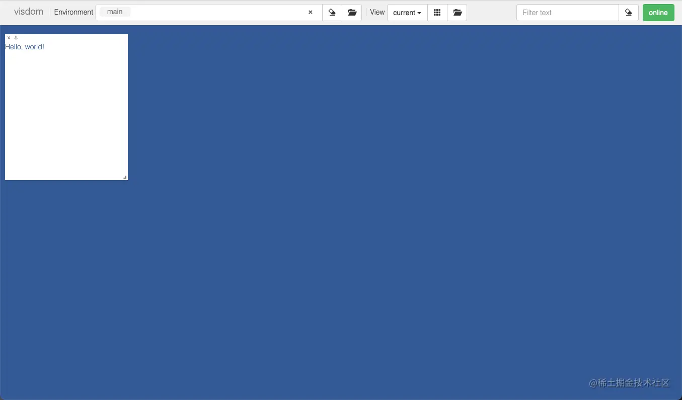 要注意喔,Visdom 服务本地启动在了 6006 端口,在 Python 客户端初始化时,需要添加参数 port=6006,如下: