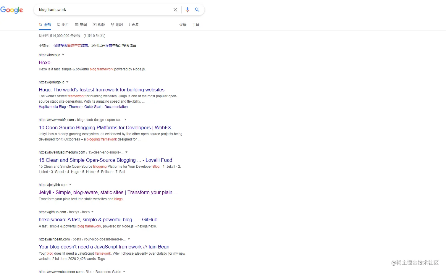 - google 搜索关键字 blog framework