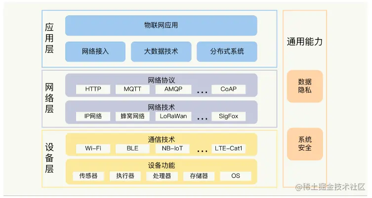 第一层是设备层,对应各种物联网硬件设备,主要关注的是通信技术