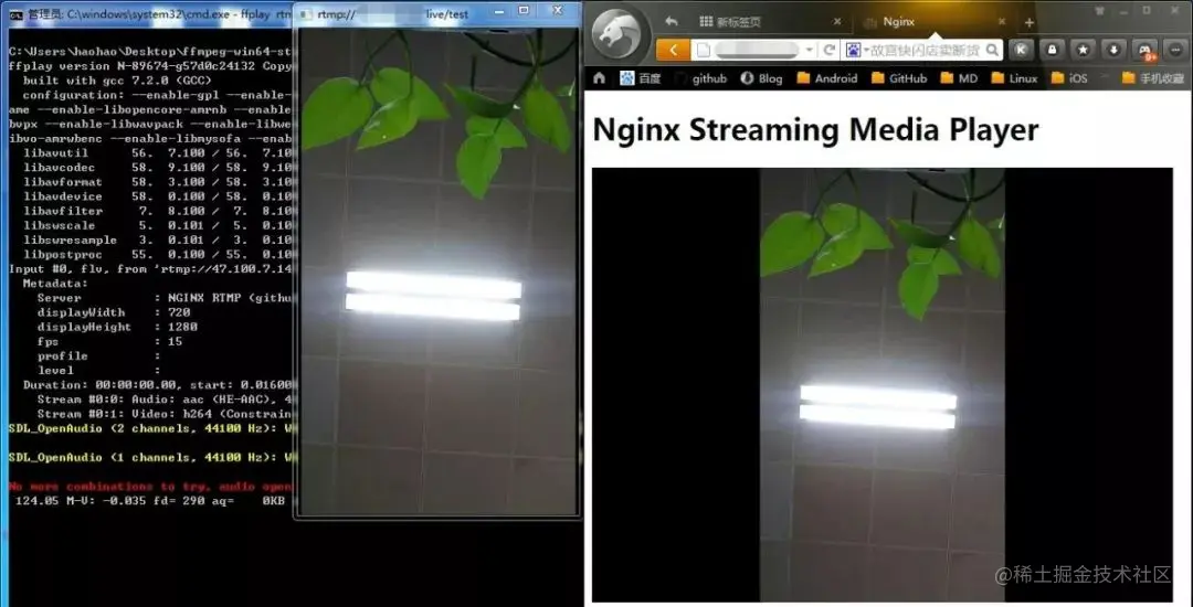 首先利用快直播 app (其他支持 RTMP 推流与引流的 app 亦可)和 ffplay.exe 对流媒体服务器进行测试。