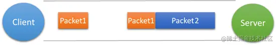 假设客户端向服务端连续发送了两个数据包,用packet1和packet2来表示,那么服务端收到的数据可以分为三种,现列举如下: