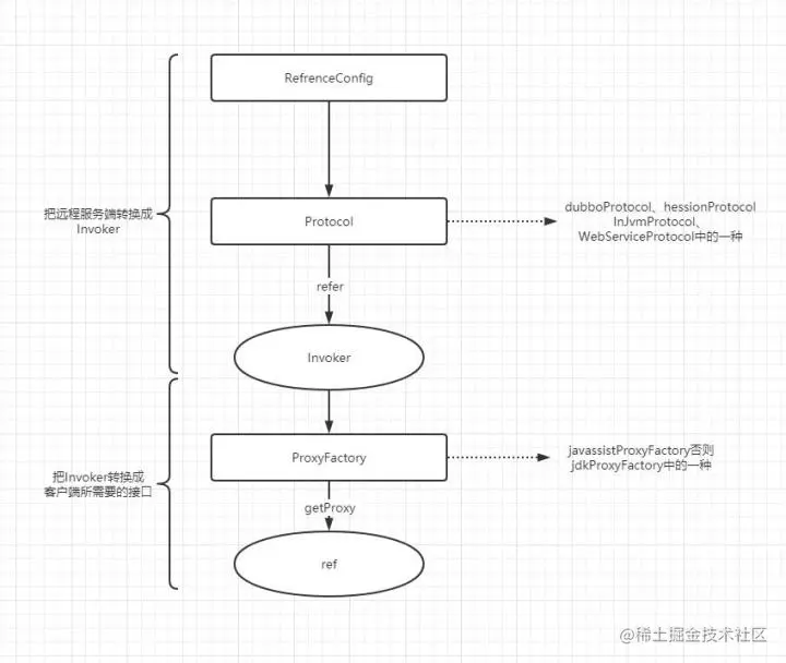 // 通过 refprotocol 调用 refer 构建 Invoker,refprotocol 会在运行时
