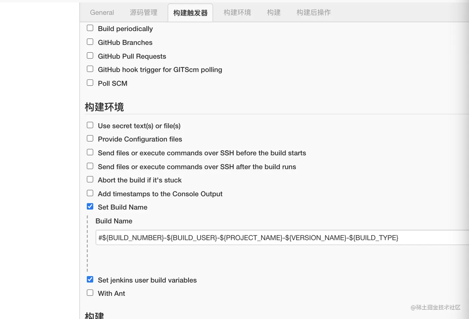 Build Name and Description Setter 此插件用于修改构建的显示名称(修改之前为默认的#1,#2,#3…)