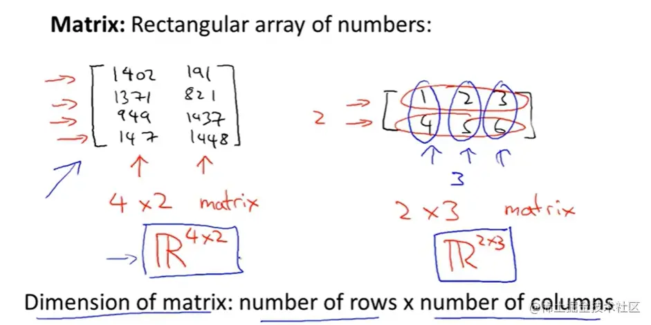 矩阵的元素:是矩阵中的数值,使用Aij来表示第i行第j列的数值