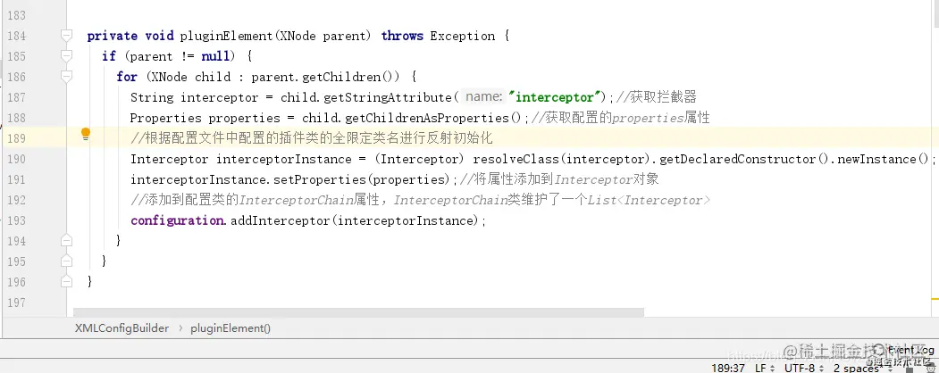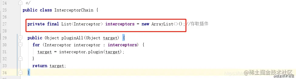解析出来之后会将插件存入InterceptorChain对象的list属性