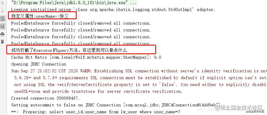 System.out.println("成功拦截了Executor的query方法,在这里我可以做点什么");