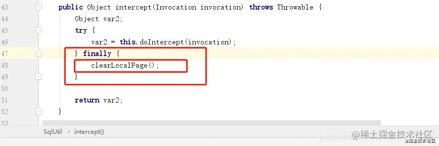 经过上面的介绍这个类应该一眼就能看懂,我们关键要看看SqlUtil的intercept方法做了什么: