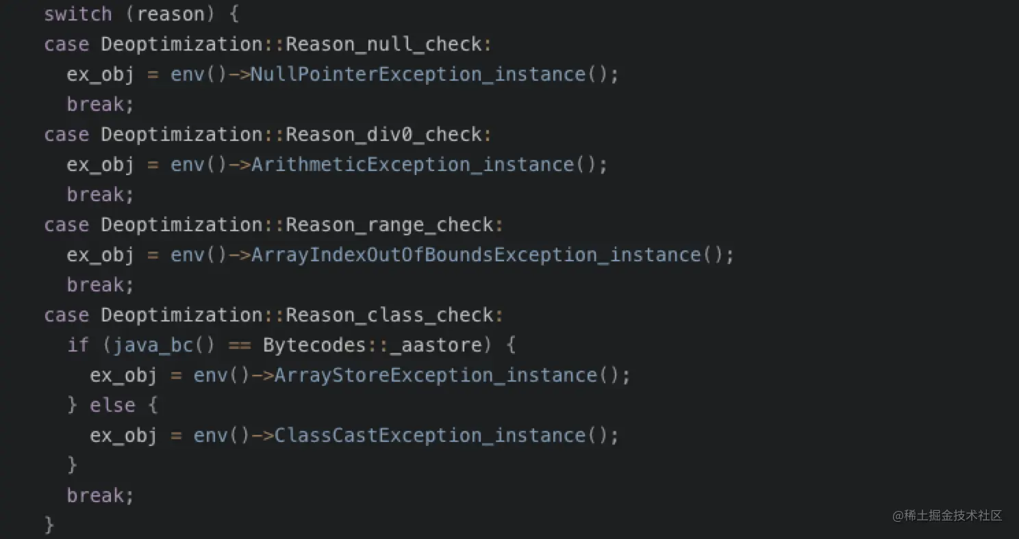 另外通过 JVM 的源码得知,Fast Throw 机制目前支持五种异常情况,截图如下