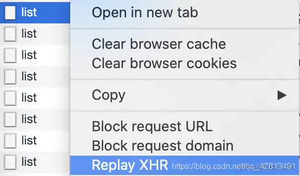 好在开发者工具提供了replay xhr,选中要重新请求的接口,右击replay xhr即可。