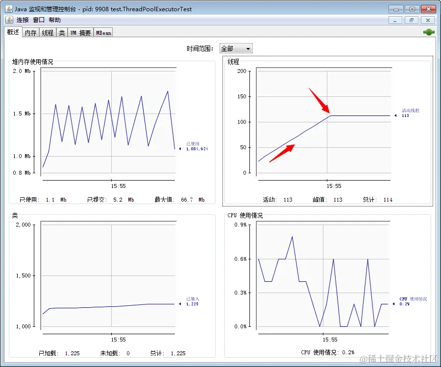 你可以使用JDK自带的监控工具来监控我们创建的线程数量,运行一个不终止的线程,创建指定量的线程,来观察: