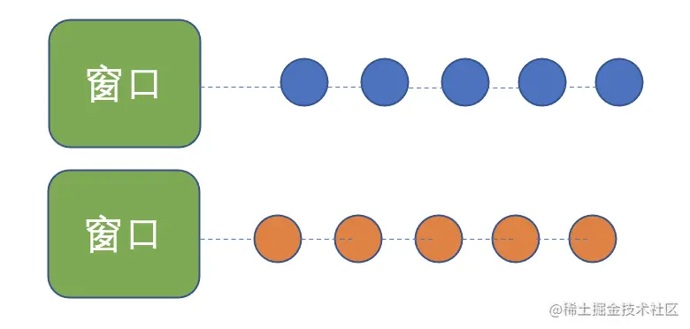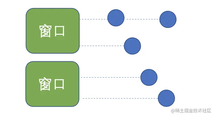 上图表示的就是并发concurrency的情况,一个窗口同时只能处理一个任务,所以两个队伍在争夺窗口这个资源。