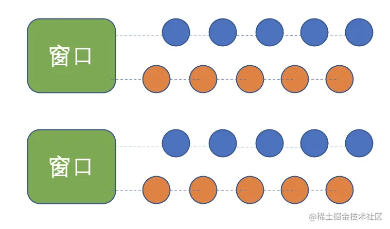 为了更好的描述这个并发问题,假设我们有10个人排成了两支队伍要去打疫苗,结果只有一个打疫苗的窗口。那么一个很可能的策略就是窗口交替给两个队伍的人打疫苗。我们做个图来表示:
