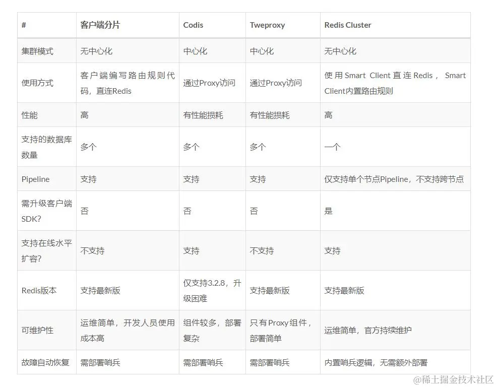 但随着Redis的版本迭代,Redis官方的Cluster也越来越稳定,更多人开始采用官方的集群化方案。也正是因为它是官方推出的,所以它的持续维护性可以得到保障,这就比那些第三方的开源方案更有优势。