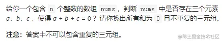 介绍完2sum问题后,我们接着来看3sum问题。题目如下所示: